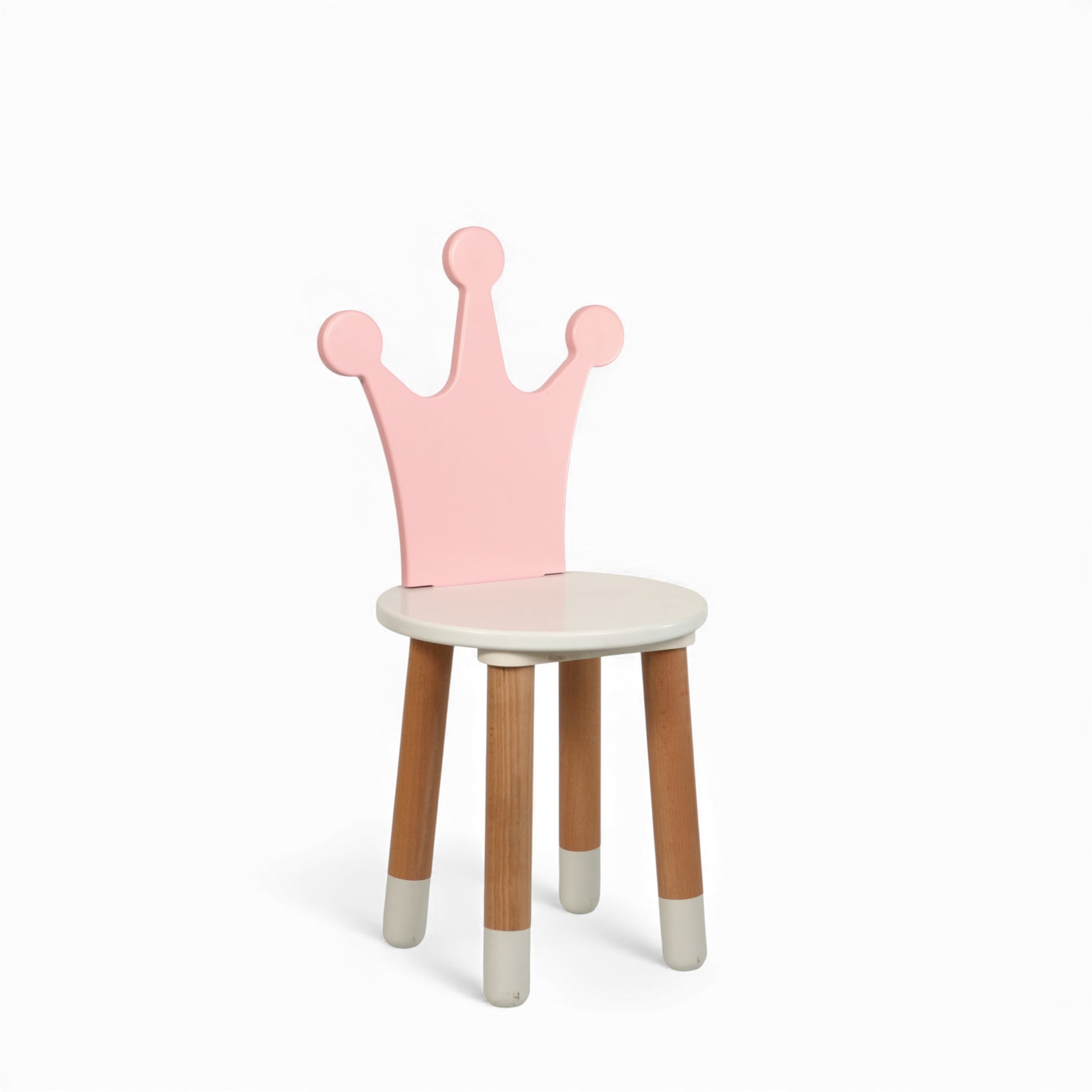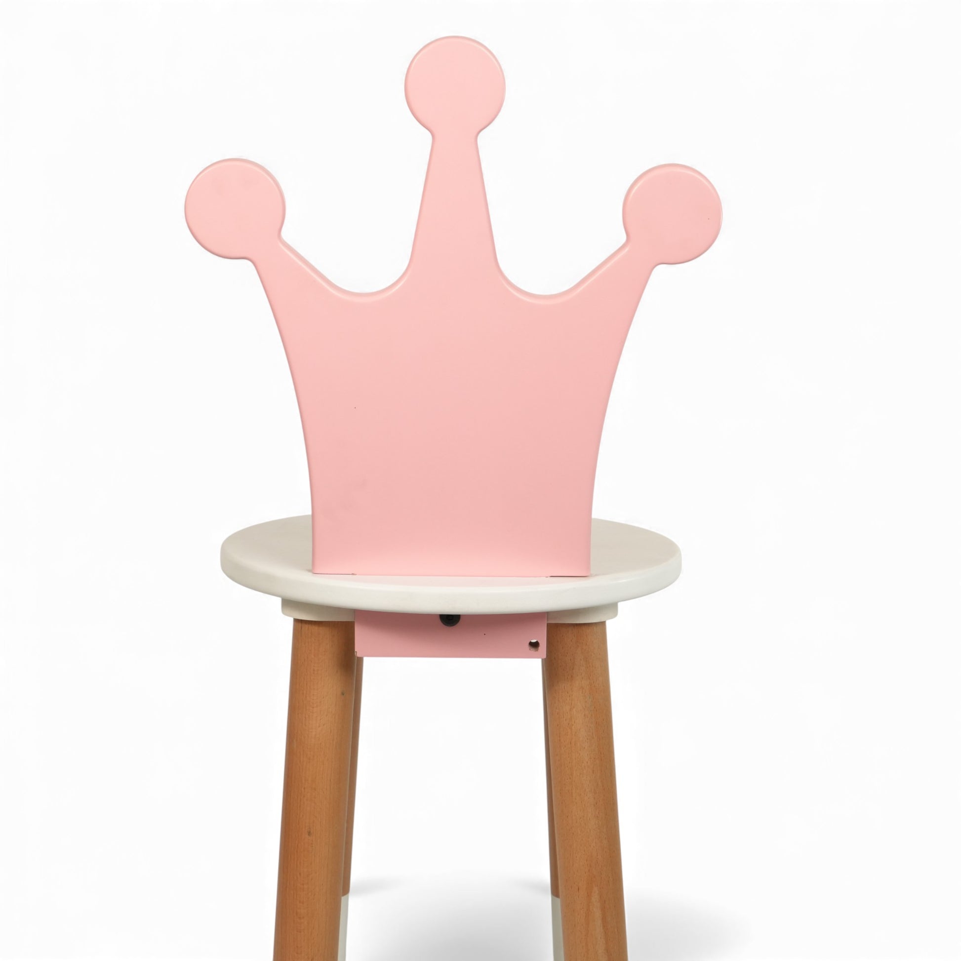 Add a royal touch to your child’s space with this charming princess crown chair. The sturdy solid wood legs provide strength and stability, while the MDF seat and backrest are crafted for comfort and durability. The backrest is shaped like a princess crown, beautifully finished with kid-safe, non-toxic paint. Smooth edges and a safe design (30-cm seating height)